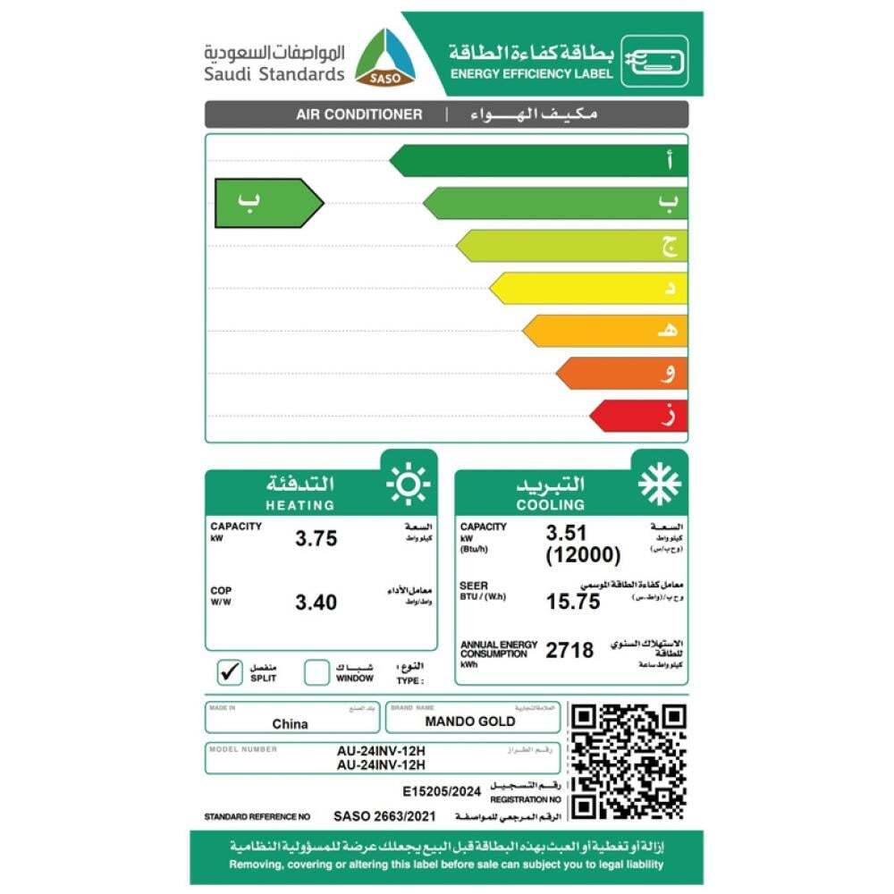 ماندو جولد مكيف سبليت 12000 وحدة انفرتر يعد خيارك الأمثل لتبريد وتدفئة الغرف ذات المساحات المتوسطة، مع ضمان تهوية سريعة وكفاءة عالية. وبفضل التحكم الذكي عبر الهاتف المحمول، ستتمكن من ضبط درجة الحرارة بكل سهولة وراحة أينما كنت.