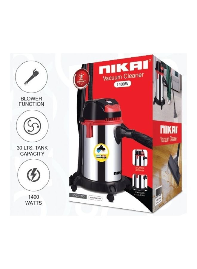 مكنسة كهربائية ثنائية الاستخدام الرطب والجاف بقوة 1400 وات، 30 لتر، أسطوانة من الستانلس ستيل 30 L 1400 W NVC33WD