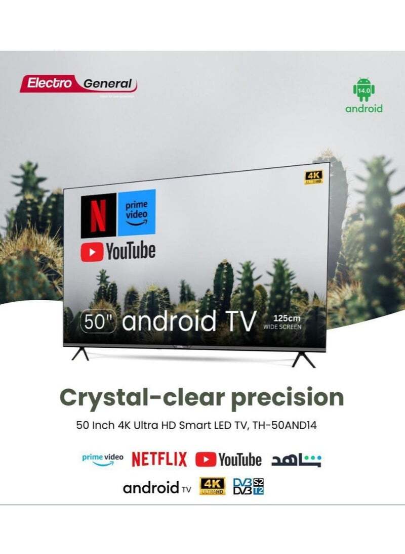 نقدم لكم تلفاز TH-50AND14 LED الذكي، الذي يتميز بحجمه الرائع البالغ 50 بوصة ودقة Ultra HD (UHD) 4K. يجلب هذا التلفاز محتواك المفضل إلى الحياة بدقة مذهلة وألوان نابضة، مما يضمن لك تجربة مشاهدة غامرة. مدعومًا بنظام التشغيل أندرويد 14،
