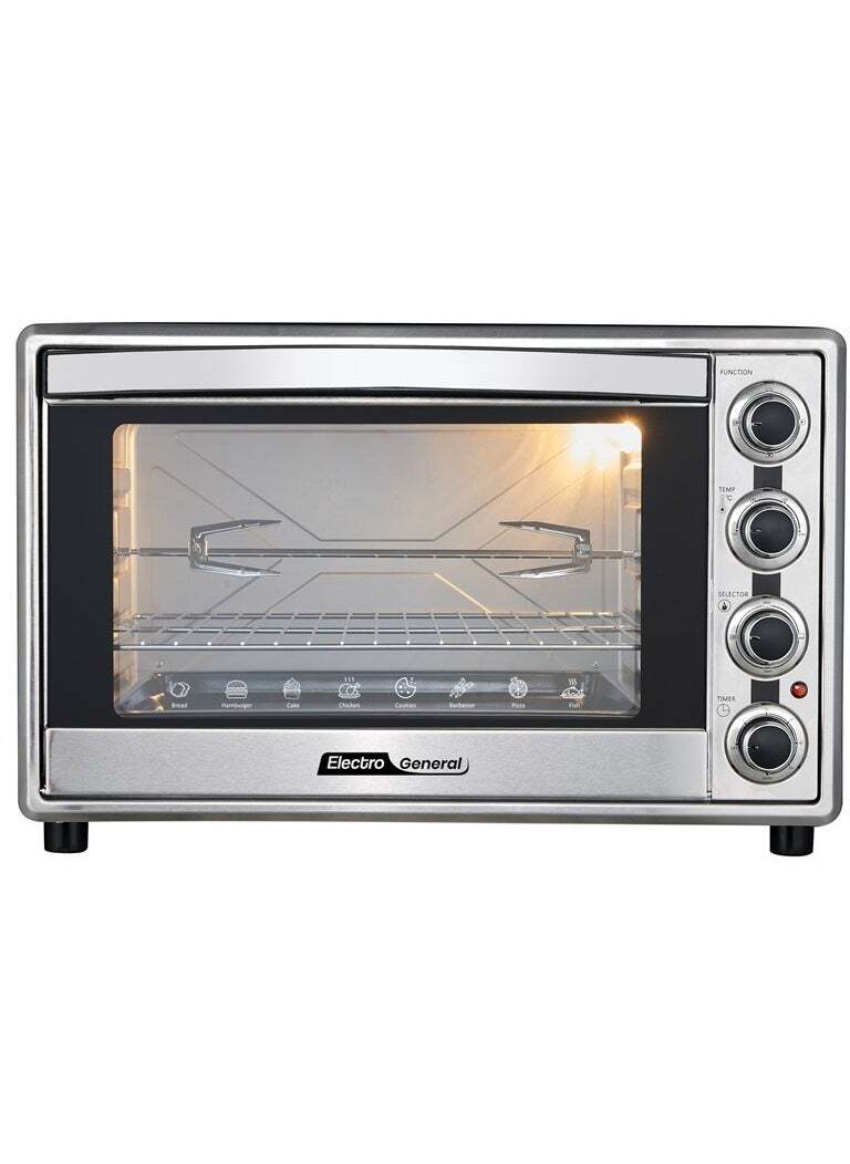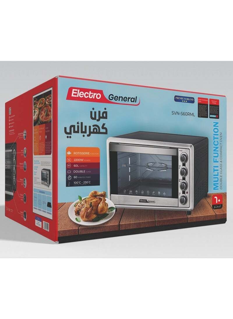 فرن كهربائي 60 لتر، 2200 وات، وظيفة الشواء، درجة حرارة قابلة للتعديل (100-230 درجة مئوية)، مؤقت 60 دقيقة مع جرس تنبية، باب زجاجي مزدوج، عناصر تسخين متينة من الفولاذ المقاوم للصدأ، اضاءة داخلية – 60 لتر وأداء قوي مع 2200 وات SVN-S60RML سيلفر