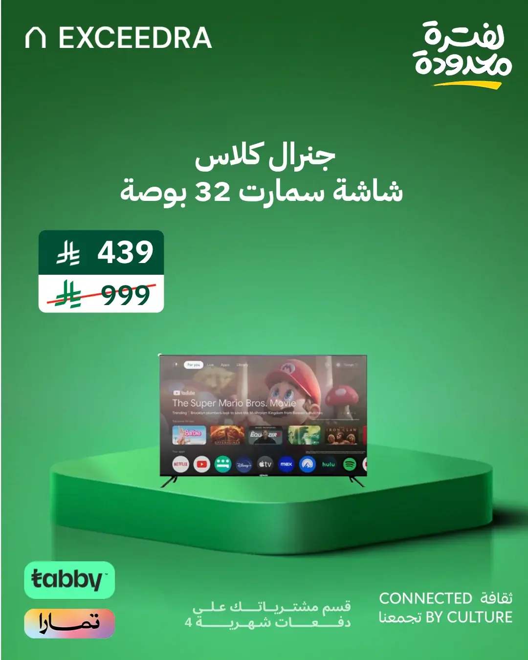 - شاشة LED 32 بوصة بدون إطار: تصميم عصري يوفر لك تجربة مشاهدة غامرة مع صورة أكبر وأكثر وضوحًا.