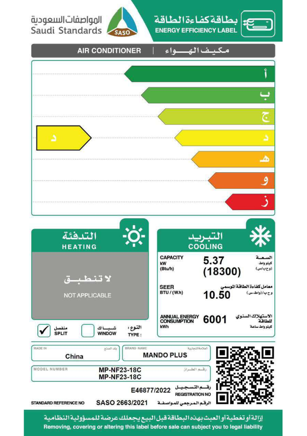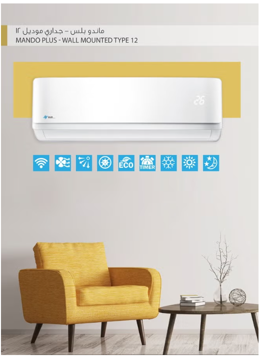 تصميم جذاب وأنيق: اللون الأبيض النقي والتصميم الجداري الأنيق يجعلان مكيف ماندو بلس قطعة ديكور فريدة، تتناسب مع أي تصميم داخلي.