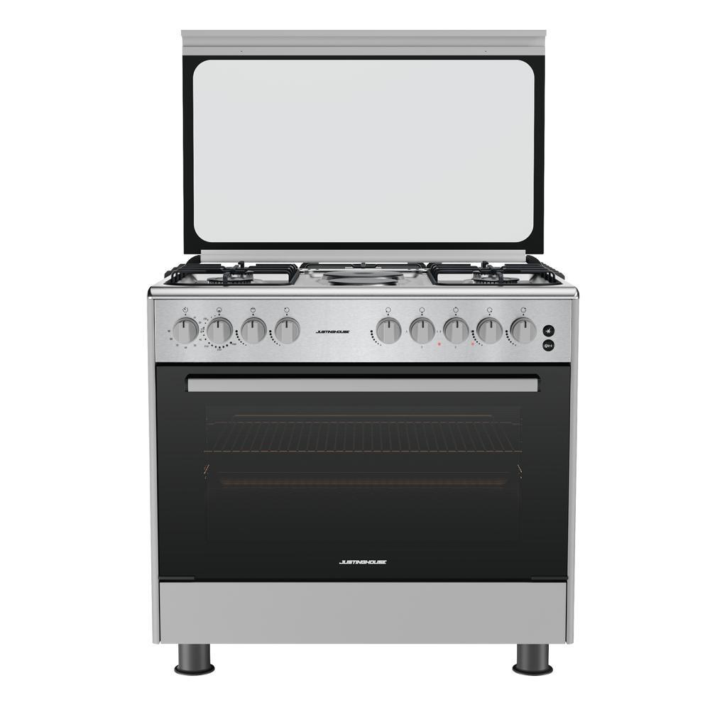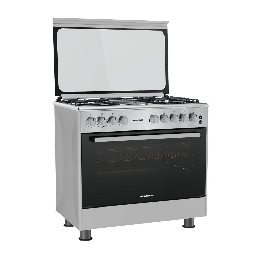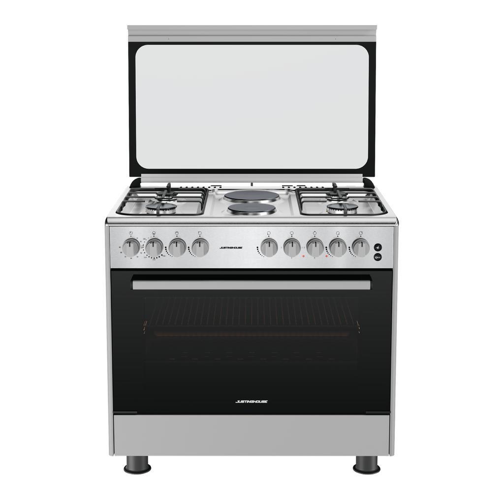 فرن جستنغ هاوس 90×60 سم، موديل JSFF9091، هو الخيار المثالي للمطابخ التي تحتاج إلى تصميم عملي وعصري. يحتوي هذا الفرن على 4 عيون غاز و2 عيون كهرباء